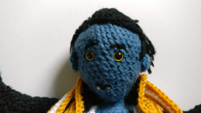 The final flourishes were a bit basic - a golden belt, a sash over the shoulders, and the face (including tiny stitches to be the fangs)