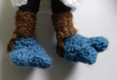 Another change is the feet. From the reference photos, you can see that Janos doesn’t have shoes - he has exposed feet with two large claws, then wrapped in a sort of foot-wrap that goes around the balls of the feet. Another book I have, AmiguruME Pets (by Hoffman again) features a pattern for a dinosaur, where the ankle is the same width as for the human patterns! Perfect, except the dinosaur features 3 toes. As such I had to do some maths to resolve it (I’m hesitant to post the exact instructions, though, as since it’s based on someone else’s designs I’m not sure if that crosses a line)